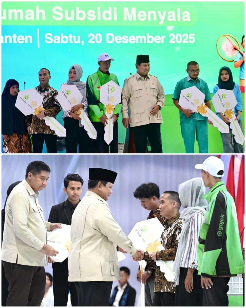 HARIAN PELITA — Presiden Prabowo Subianto menghadiri acara Akad Massal 50.030 Unit Rumah Kredit Perumahan Rakyat (KPR) Sejahtera Fasilitas Likuiditas Pembiayaan Perumahan (FLPP) dan Serah Terima Kunci Tahun 2025 pada Sabtu 20 Desember 2025 di Kota Serang, Banten.