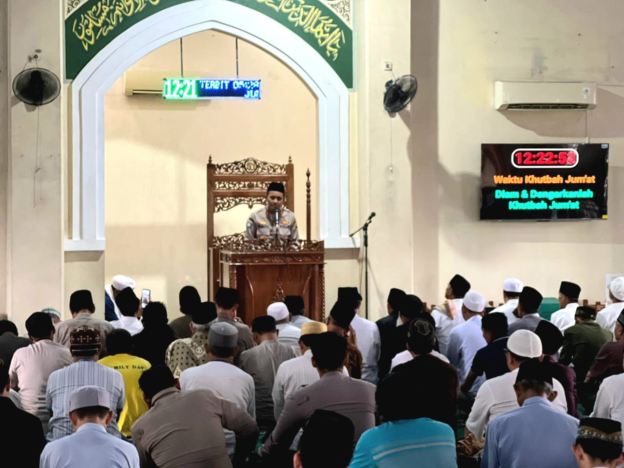 Usai salat, AKBP Sujanto menyampaikan pesan kamtibmas kepada jamaah. Dalam arahannya, ia mengajak masyarakat untuk terus memperkuat sinergi dengan kepolisian dalam menjaga keamanan dan ketertiban lingkungan.
