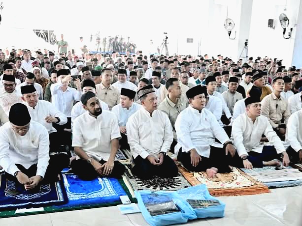 HARIAN PELITA — Presiden Prabowo Subianto melaksanakan salat Idulfitri bersama masyarakat di Masjid Darussalam, kawasan hunian sementara (huntara), Kabupaten Aceh Tamiang, Provinsi Aceh, Sabtu (21/03/2026), bertepatan dengan 1 Syawal 1447 Hijriah.