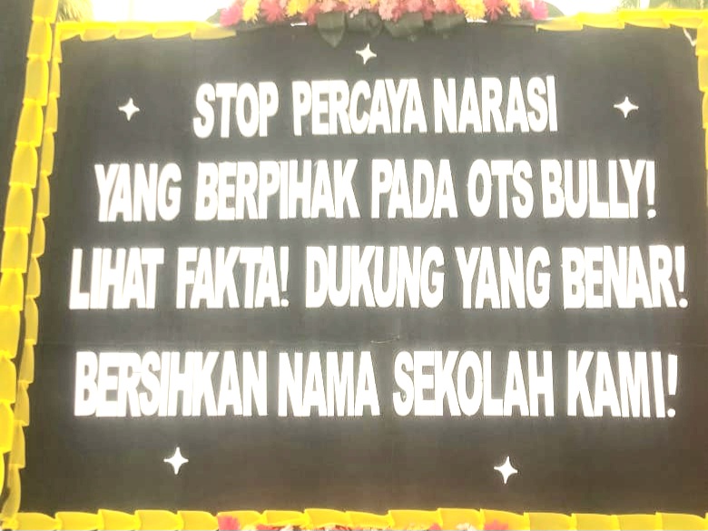 Berbagai karangan bunga lainnya juga nampak disekitar wilayah sekolah dengan beragam tulisan. Karangan bunga muncul setelah LSM GRACIA memperoleh temuan dugaan perundungan atau bullying.