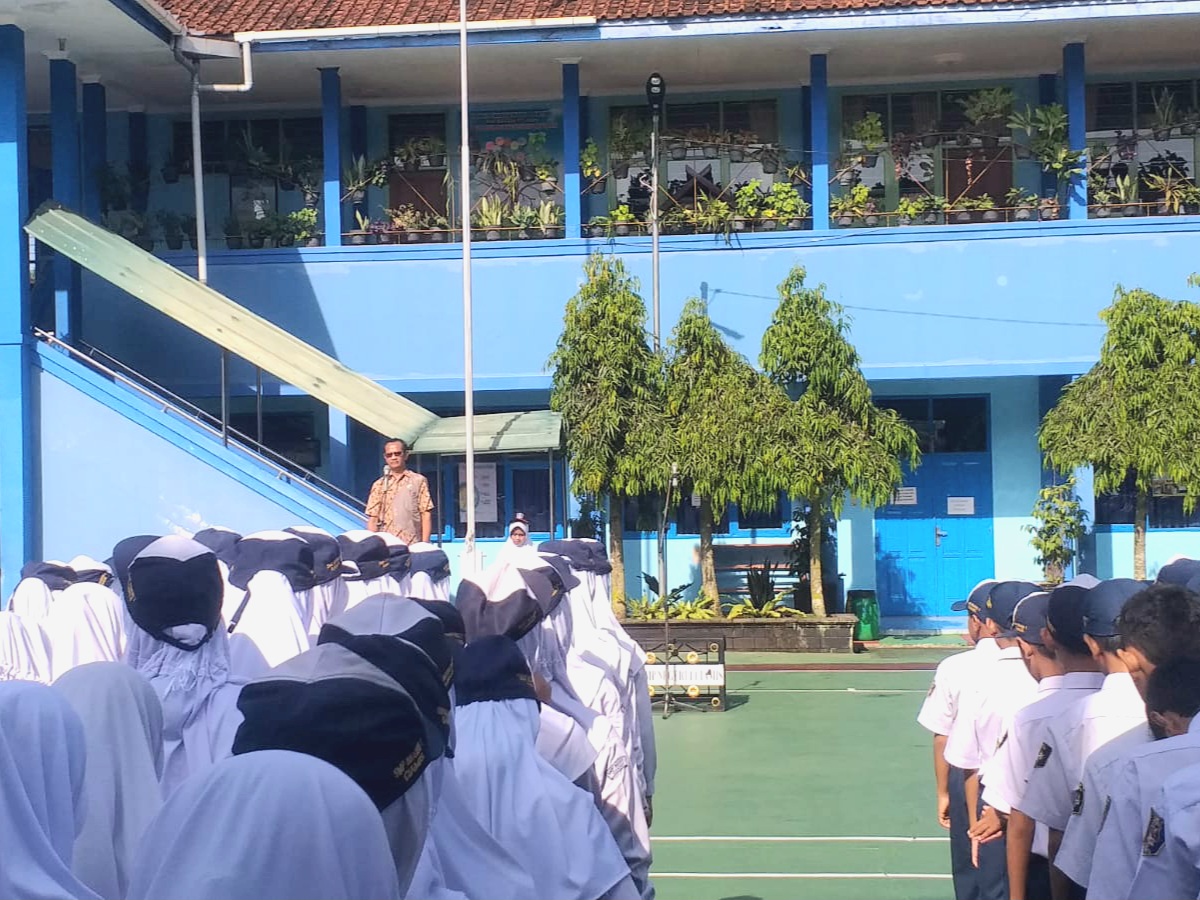 Kepala SMPN 1 Ciamis Asep Surur membuka kegiatan dengan ajakan agar seluruh warga sekolah menjaga semangat kebersamaan.