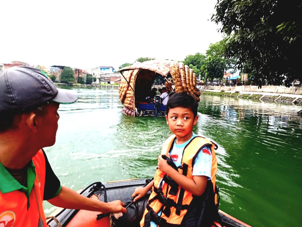 “Saat ini kita dorong warga untuk memilah sampah, jadi sekitar satu kilogram sampah botol aqua dan sejenisnya. Itu sekitar satu kilogram jadi warga bisa menaiki kapal wahana cilung ini, ” jelas tim PHL UPS Dinas LH, Kamis (30/10/2025).