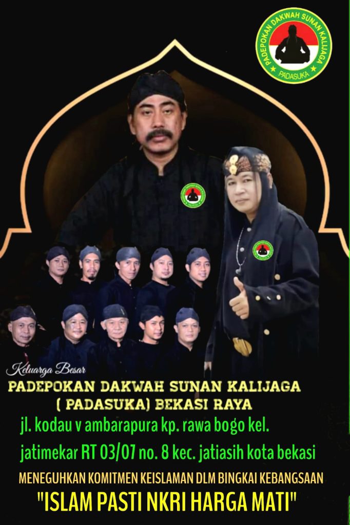 HARIAN PELITA — Majelis Ta’lim dan Dzikir Sunan Kalijaga didirikan pada 12 Desember 2008, kemudian di sahkan Kementerian Agama Kota Bekasi pada 15 Oktober 2012 silam. Namun ada tambahan majelis menjadi “Majelis Ta’lim dan Dzikir Padepokan Dakwah Sunan Kalijaga Bekasi Raya (Padasuka Bekasi Raya).