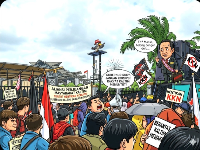 Aksi ini disebut sebagai respons terhadap kebijakan Gubernur Kaltim Rudy Mas’ud yang dinilai menuai kontroversi.