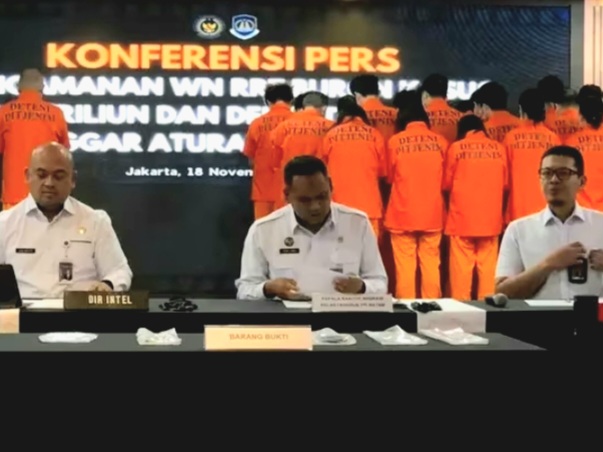 Direktur Intelijen Keimigrasian, Agus Waluyo, dalam konferensi pers di Ditjen Imigrasi, Jakarta Selatan, pada Selasa (18/11/2025) mengatakan, para WNA tersebut merupakan kelompok penipuan daring beroperasi dari Indonesia, tetapi menargetkan korban di China. Mereka akan dikenai tindakan administrasi keimigrasian sebelum dideportasi.