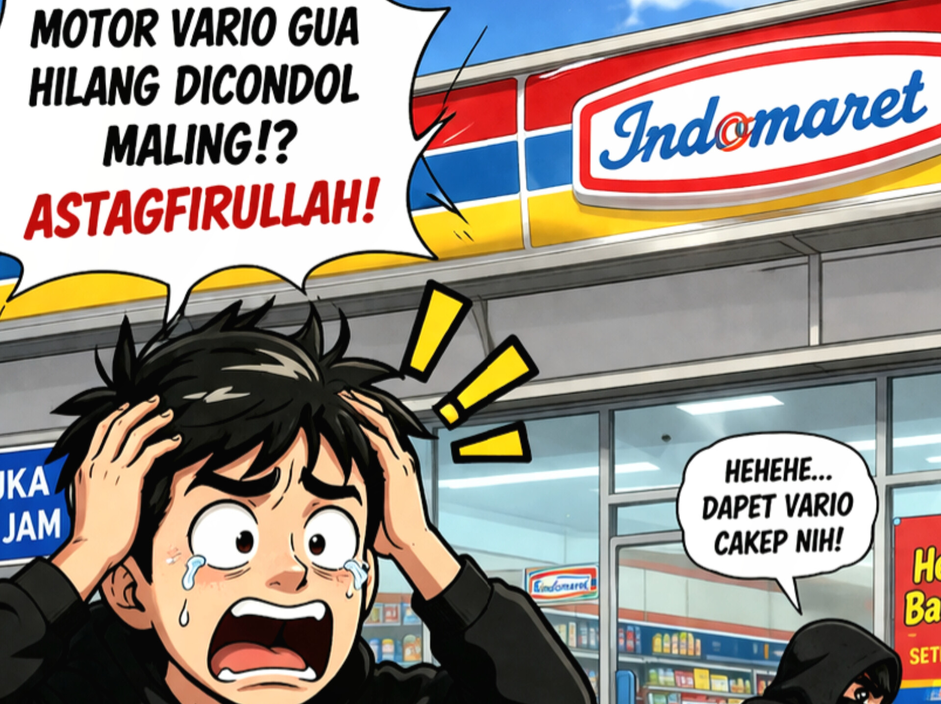 Diakui Sabri pada saat tiba ke Indomaret ia lupa melepas kunci motornya. Ia pun panik motornya tak ada di tempat parkir.