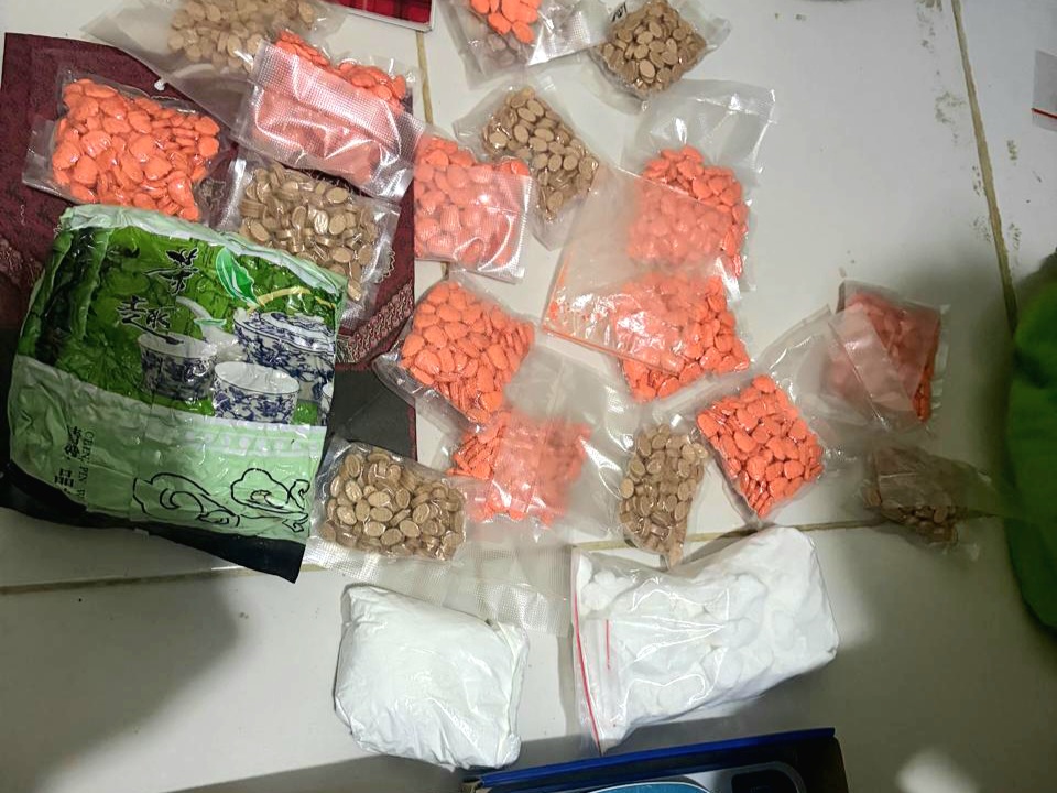 Di lokasi tersebut, ditemukan 1.694 butir ekstasi yang terdiri dari 914 butir warna oranye dan 780 butir warna cokelat dan 367,5 gram berisi serbuk kafein berwarna putih. Polisi juga menyita timbangan digital serta bahan campuran berupa serbuk kafein.