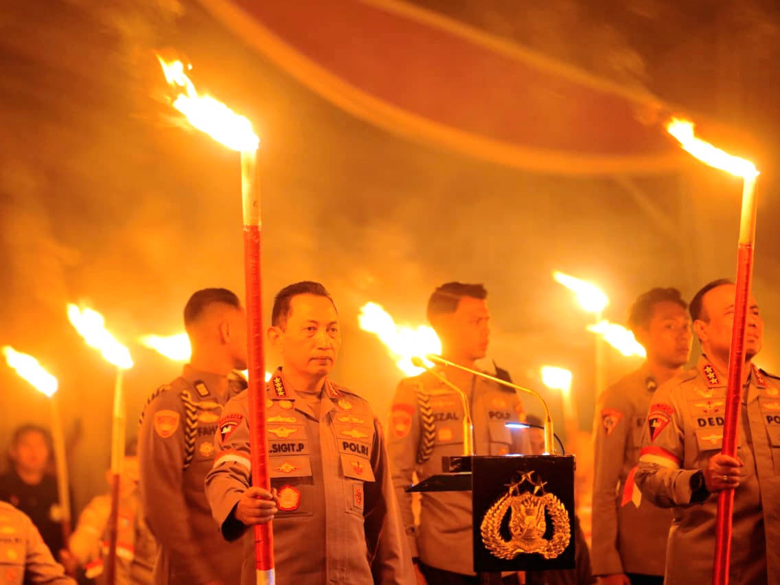 Diterangi Ribuan Obor Kapolri Pimpin Renungan Nilai-Nilai Ksatria Bhayangkara