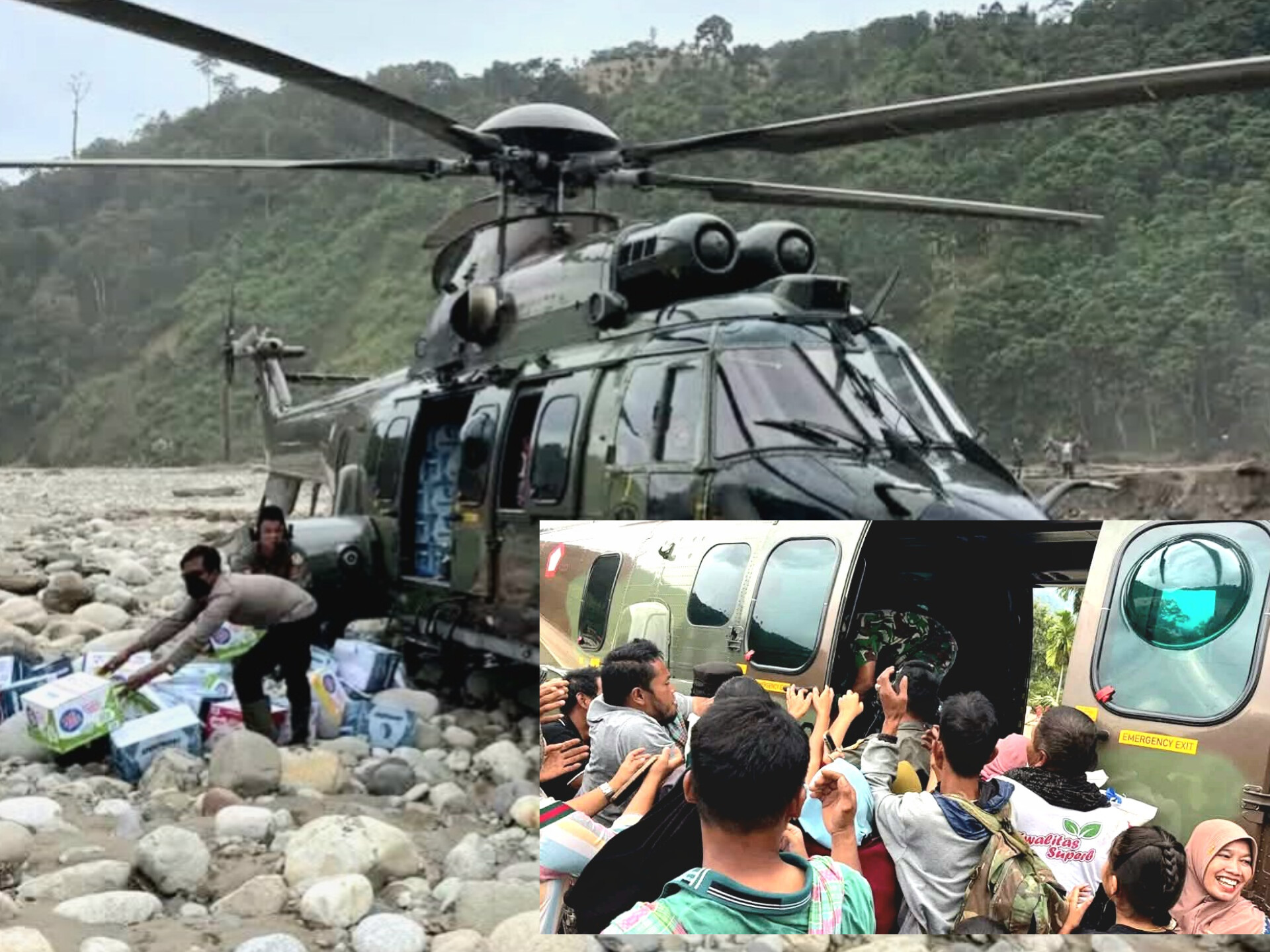 Helikopter Caracal TNI Salurkan Sembako Bantuan Bencana di Gayo Lues Aceh