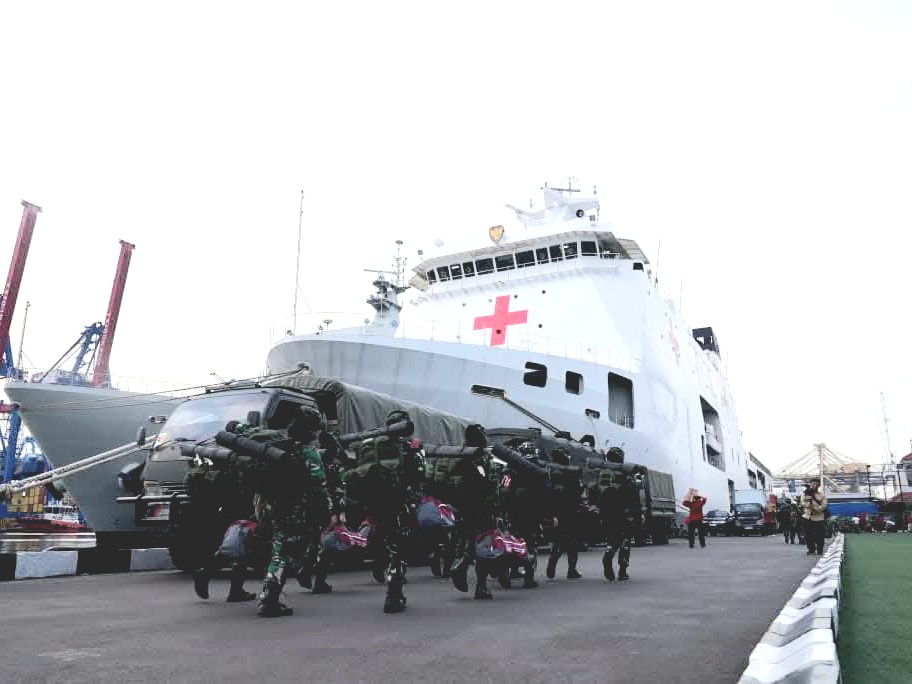 Setelah menerima pengarahan, tim satgas melaksanakan embarkasi menuju KRI dr. Radjiman Wedyodiningrat-992 di Kolinlamil sebelum berlayar ke wilayah terdampak. ●Redaksi/Alia