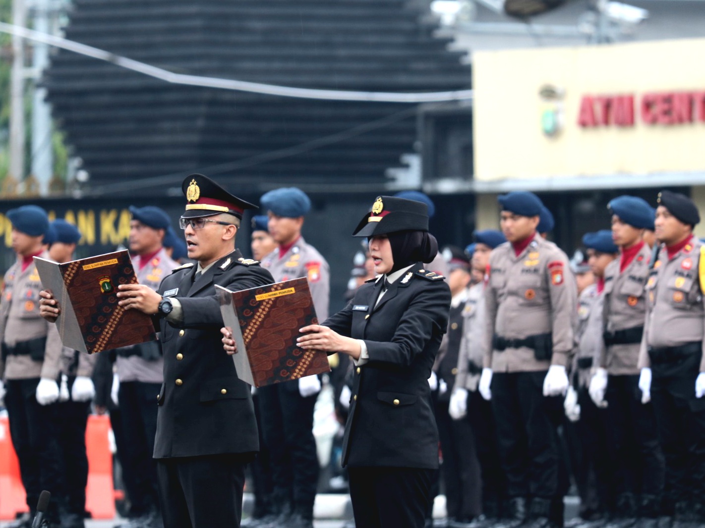 Kombes Pol Sri Satyatama membacakan amanat Menteri Pemuda dan Olahraga Republik Indonesia, yang menekankan pentingnya semangat juang dan persatuan pemuda Indonesia di tengah tantangan zaman yang semakin kompleks.