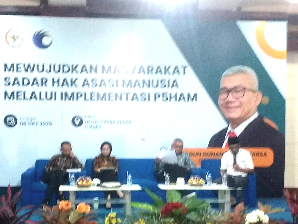HARIAN PELITA — Mewujudkan masyarakat Sadar Hak Asasi Manusia Melalalui Implementasi P5 HAM bersama Anggota Komisi XIII DPR-RI H Agun Gunanjar Sudarsa, kegiatan Sosialisasi Implementasi, Perlindungan, Pemajuan, Penegakan Hukum (P5 HAM) berlangsung di Hotel Tiara Plasa Ciamis pada Senin (6/10/2025).