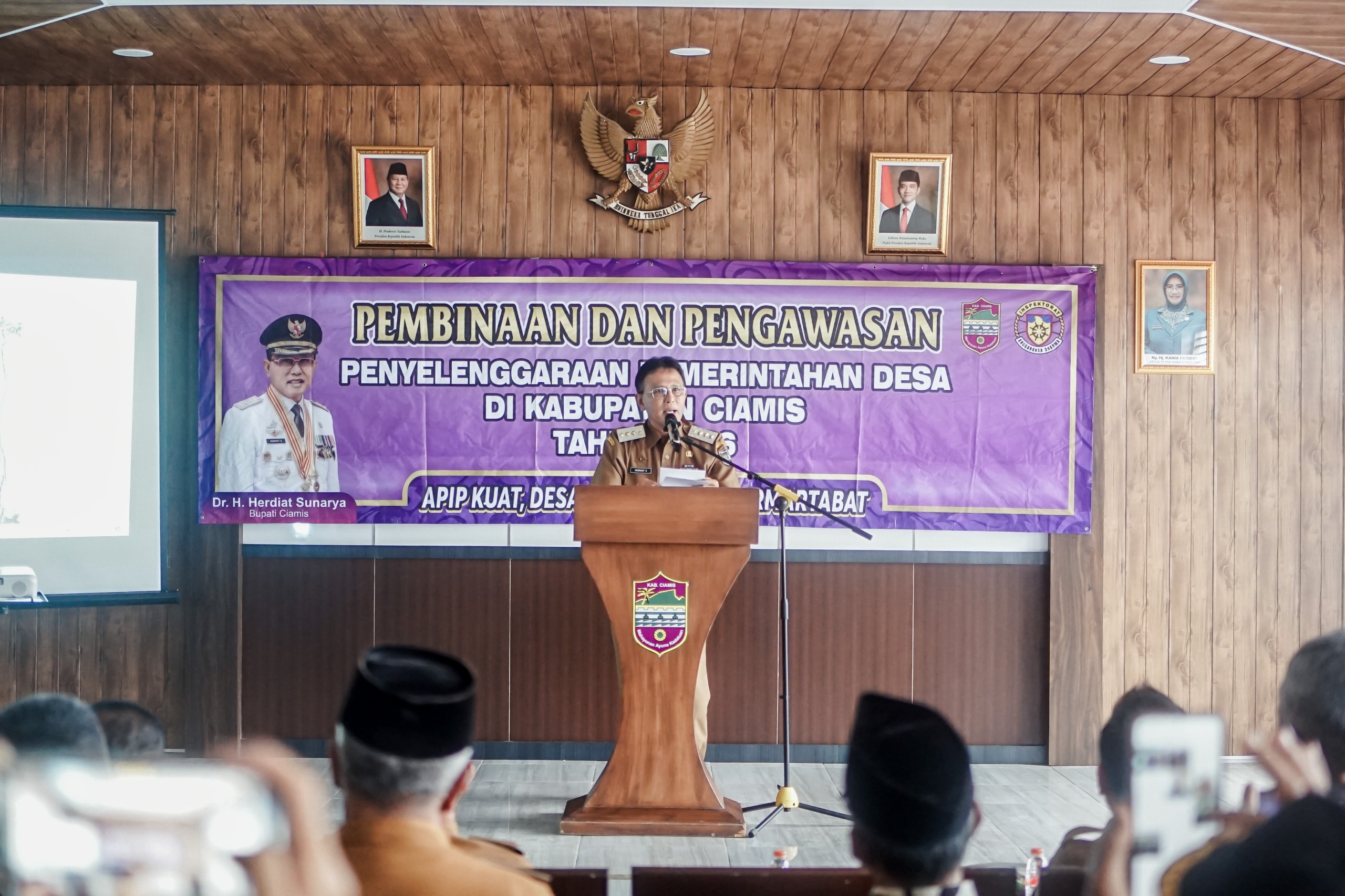HARIAN PELITA— Dorongan tersebut disampaikan Bupati Ciamis Dr. H. Herdiat Sunarya saat memberikan arahan pada Kegiatan Pembinaan dan Pengawasan Penyelenggaraan Pemerintahan Desa di Kecamatan Panumbangan dan Sukamantri, Selasa (10/02/2026) bertempat di Aula Desa Kertaraharja, Kecamatan Panumbangan.