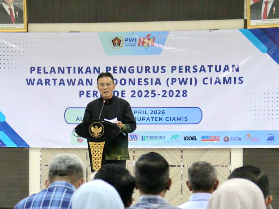 HARIANPELITA – Bupati Ciamis menghadiri dan memberikan arahan pada acara pelantikan pengurus Persatuan Wartawan Indonesia (PWI) Kabupaten Ciamis periode 2025-2028.