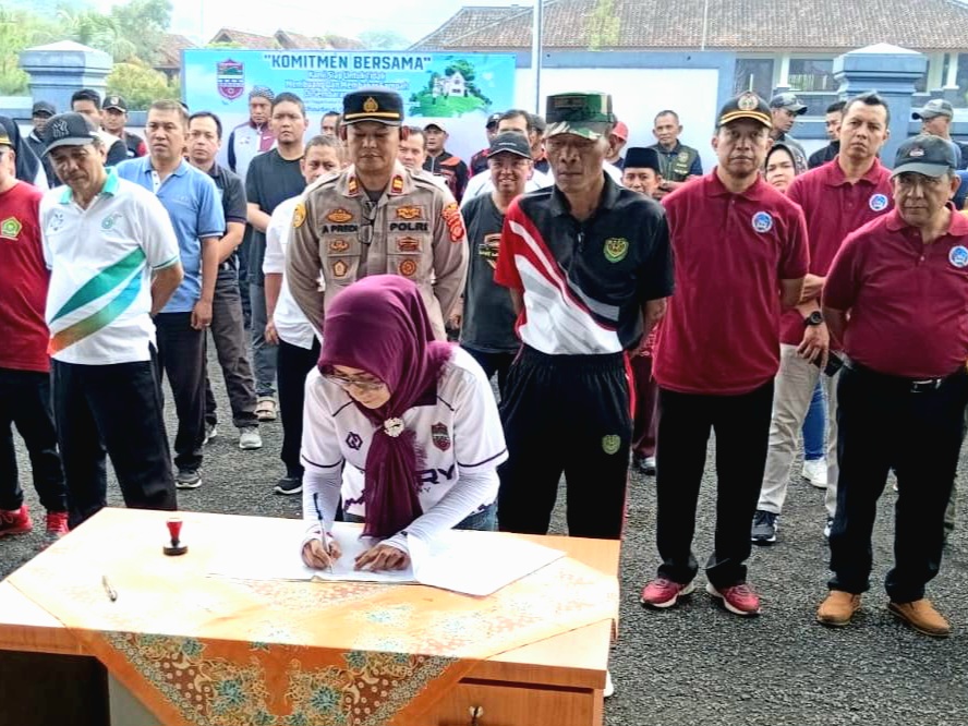 HARIAN PELITA — Melaksanakan arahan Presiden dan Bupati Ciamis jajaran Forum Komunikasi Pimpinan Kecamatan (Forkopimcam) Cihaurbeuti bersama unsur pemerintah desa, masyarakat, dan relawan setempat bersinergi melaksanakan kegiatan korve atau kerja bakti massal usai mendengarkan Pidato Bupati Ciamis H Herdiat Sunarya lewat virtual dan diteruskan penandatanganan Fakta Integritas pada Jumat (6/2/2026).