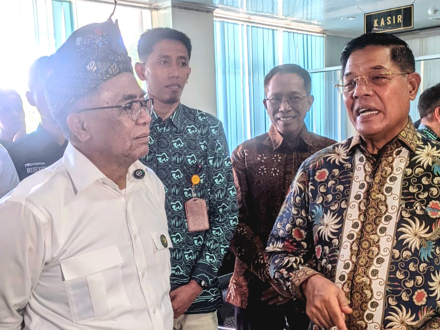 HARIAN PELITA — Bupati Lombok Timur H Haerul Warisin didampingi sekertaris Daerah Kabupaten Lotim Juaini Taufik menyambut kedatangan Ketua Badan Amil Zakat Nasional Republik Indonesia (BAZNAS RI) Sodik Mujahid bersama Ketua Baznas Provinsi NTB Lalu Muhammad Iqbal Murad, berkunjung ke Rumah Sehat BAZNAS di Labuhan Haji, Kamis 23/04/2026.