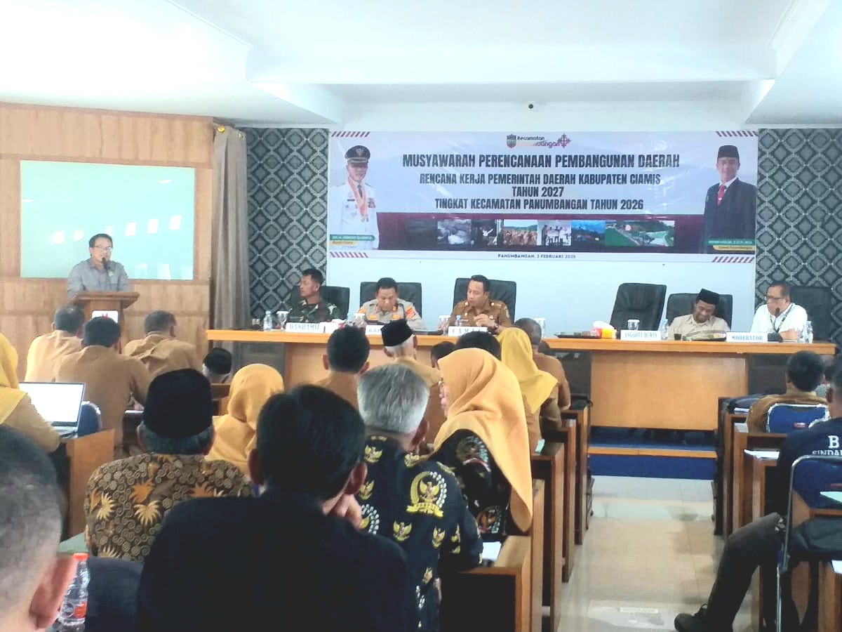 Bertempat di Aula UPK Galuh Buana Panumbangan, Selasa (3/2/2026), Camat Panumbangan Irfan Helmi resmi membacakan sambutan tertulis Bupati Ciamis, Herdiat Sunarya, dalam pembukaan Musyawarah Perencanaan Pembangunan (Musrenbang) RKPD Tahun 2027 tingkat Kecamatan.
