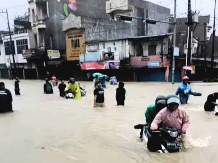 Jalan Letda Sujono dekat pintu Tol Bandar Selamat air setinggi lutut orang dewasa termasuk di kawasan UNIMED dan UIN Medan Area dilaporkan lumpuh total.