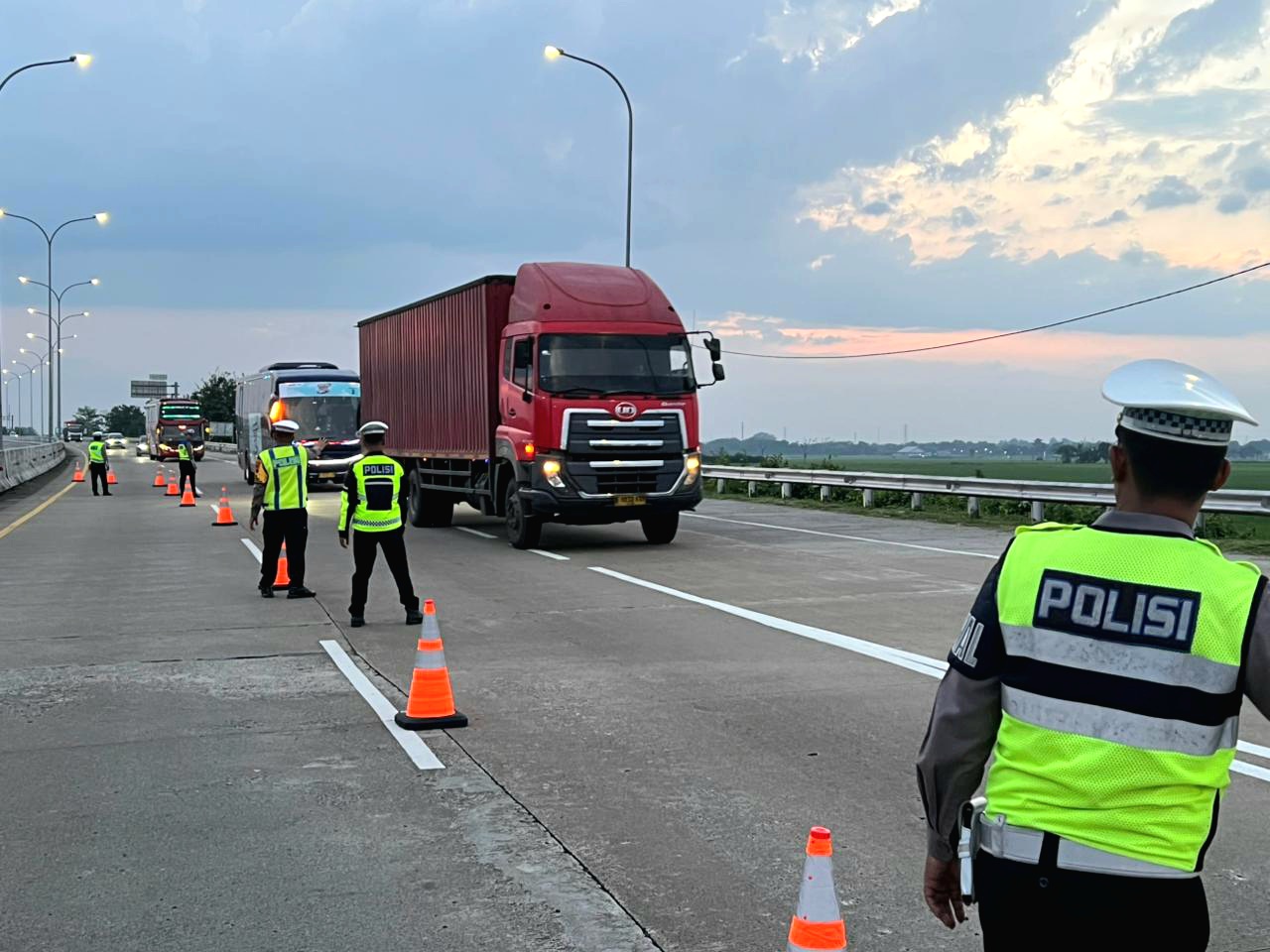 “Pembatasan operasional kendaraan angkutan barang bersumbu tiga atau lebih merupakan kebijakan nasional untuk mengurangi potensi kepadatan lalu lintas di jalur tol maupun jalur arteri selama periode mudik dan arus balik Lebaran. Oleh karena itu, jajaran Polda Jateng melakukan penyekatan sekaligus memberikan sosialisasi kepada para pengemudi agar memahami dan mematuhi aturan yang berlaku,” ujar Kombes Pol. Artanto.