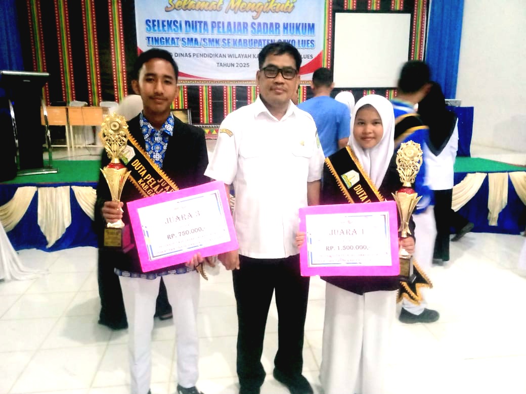 HARIAN PELITA — Prestasi membanggakan kembali diraih SMA Negeri Terangun, Kabupaten Gayo Lues. Dalam ajang Seleksi Duta Pelajar Sadar Hukum (Sadarkum) Tingkat Kabupaten Gayo Lues digelar pada Rabu, 29 Oktober 2025 di Aula SMAN Seribu Bukit Gayo Lues, perwakilan dari SMAN Terangun berhasil menyabet Juara I dan Juara III sekaligus.