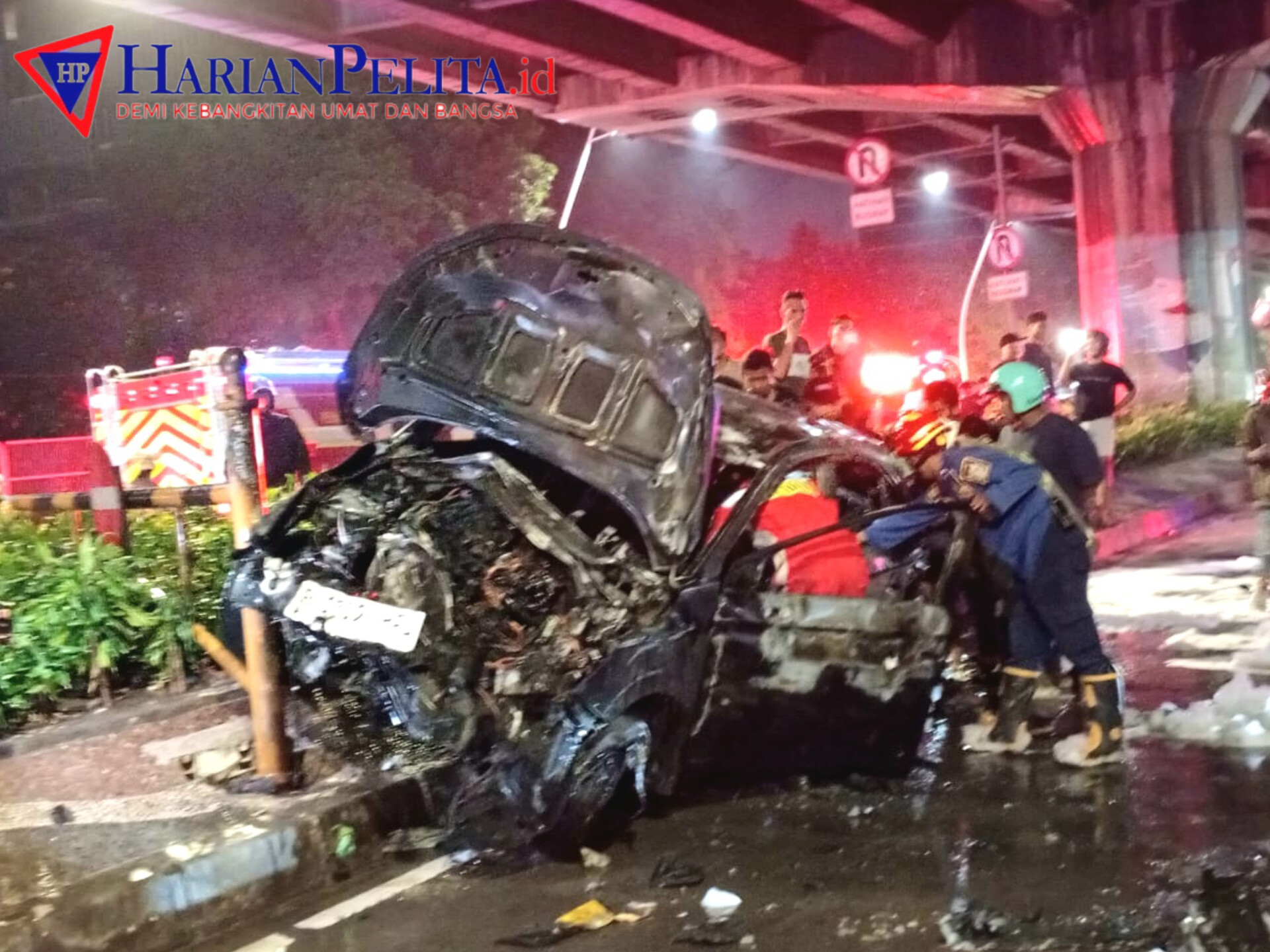 Diduga Pengemudi Mabuk Mobil Hitam di Rawasari Terbakar