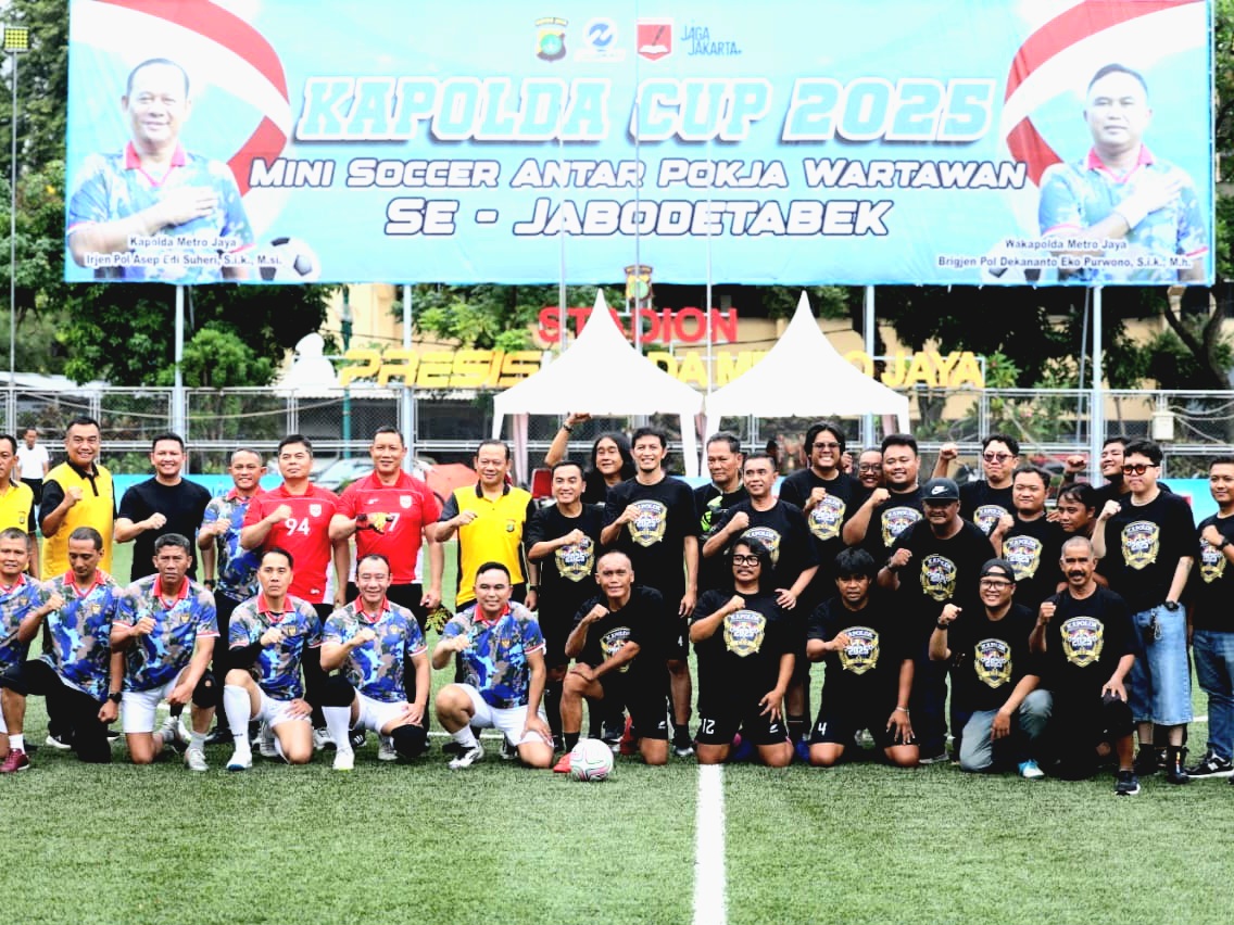 HARIAN PELITA – Kapolda Metro Jaya bersama Wakapolda Metro Jaya melaksanakan olahraga bersama Pejabat Utama (PJU) Polda Metro Jaya dilanjutkan dengan pertandingan minisoccer persahabatan melawan Forum Wartawan Polri (FWP) Polda Metro Jaya. Kegiatan berlangsung di Stadion Minisoccer Presisi PMJ, Jumat (19/11/2025).