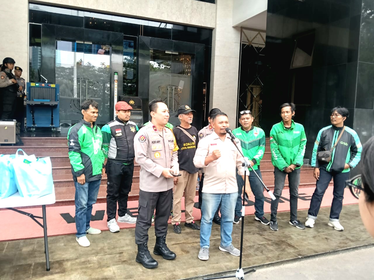 Sementara itu, di depan Lobby Gedung Promoter Polda Metro, Salah satu ketua komunitas, Serikat Pengemudi Ojek online yang hadir bersama ratusan pengemudi ojol turut menyampaikan terima kasih kepada Kapolda Metro Jaya Irjen Asep Edi Suheri.