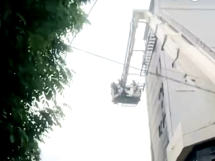 Proses penyelamatan berlangsung dramatis karena korban harus diturunkan satu per satu dari ketinggian gedung.