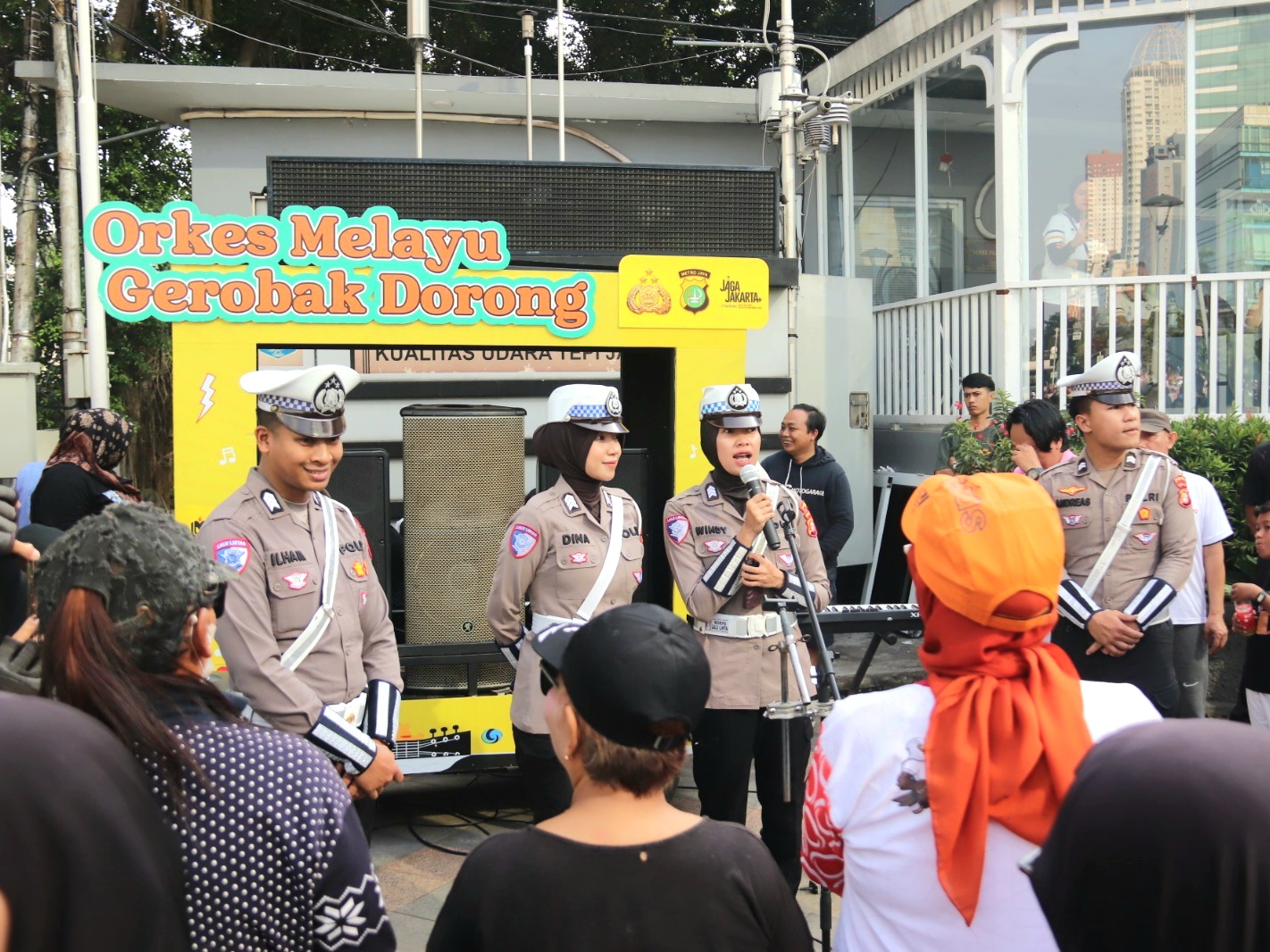 Pentas Orkes Melayu GerobakCFD Bundaran HI, Polwan Menyapa Warga