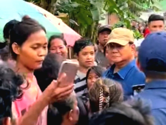 Kunjungan mendadak itu membuat warga juga kaget tak menyangka yang datang itu Pak Presiden Prabowo hanya bertopi, pakai baju warna biru muda didampingi Teddy Wijaya dan ajudannya.