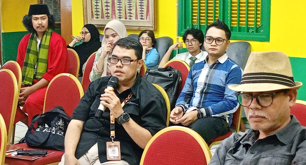 Berlokasi di lantai 4 Gedung Nyi Ageng Serang, Kuningan, Jakarta Selatan, 20-an peserta undangan dari komunitas, praktisi, pelaku seni dan budaya maupun sivitas akademika universitas tampak cukup serius mengikuti kegiatan.