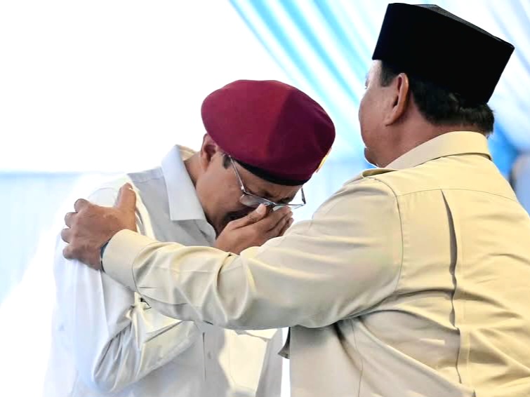 Ia tampak meneteskan air mata sambil mengusap, Gus Ipul terharu sekali, dan ia melihat ke Presiden Prabowo. Ekspresi wajahnya tak bisa dibohongi bila ia sangat terharu.