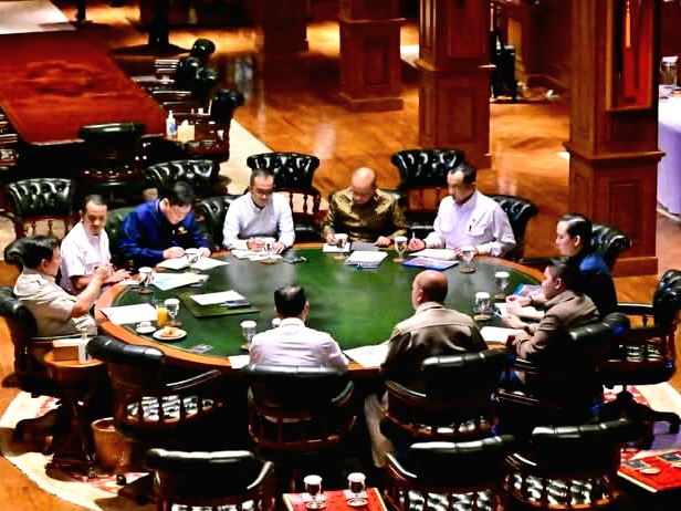 HARIAN PELITA — Presiden Prabowo Subianto menerima Menteri Investasi dan Hilirisasi/Kepala BPI Danantara Rosan Roeslani bersama sejumlah menteri Kabinet Merah Putih di kediaman pribadi Presiden di Hambalang, Bogor, Jawa Barat, Rabu (25/03/2026).